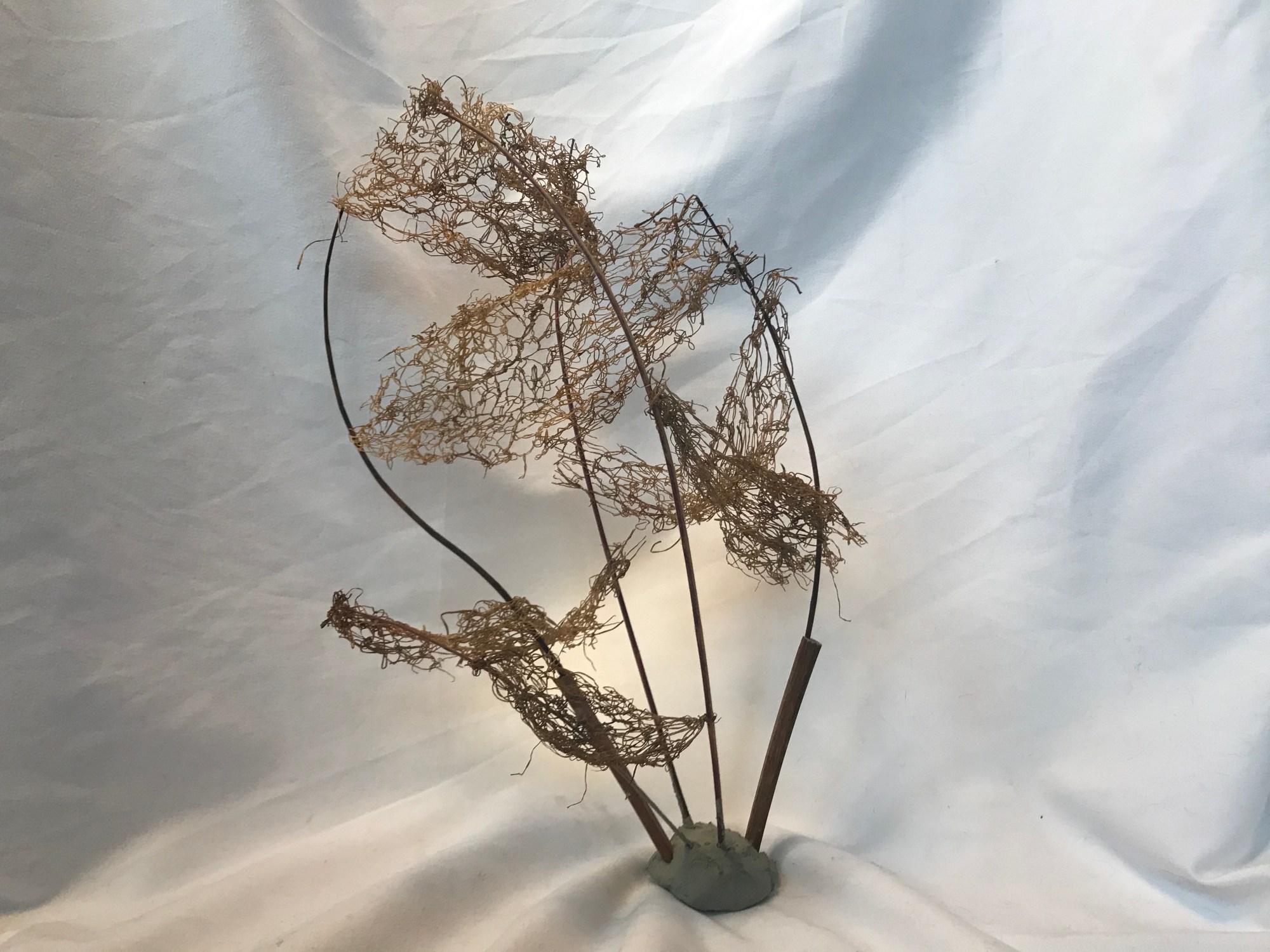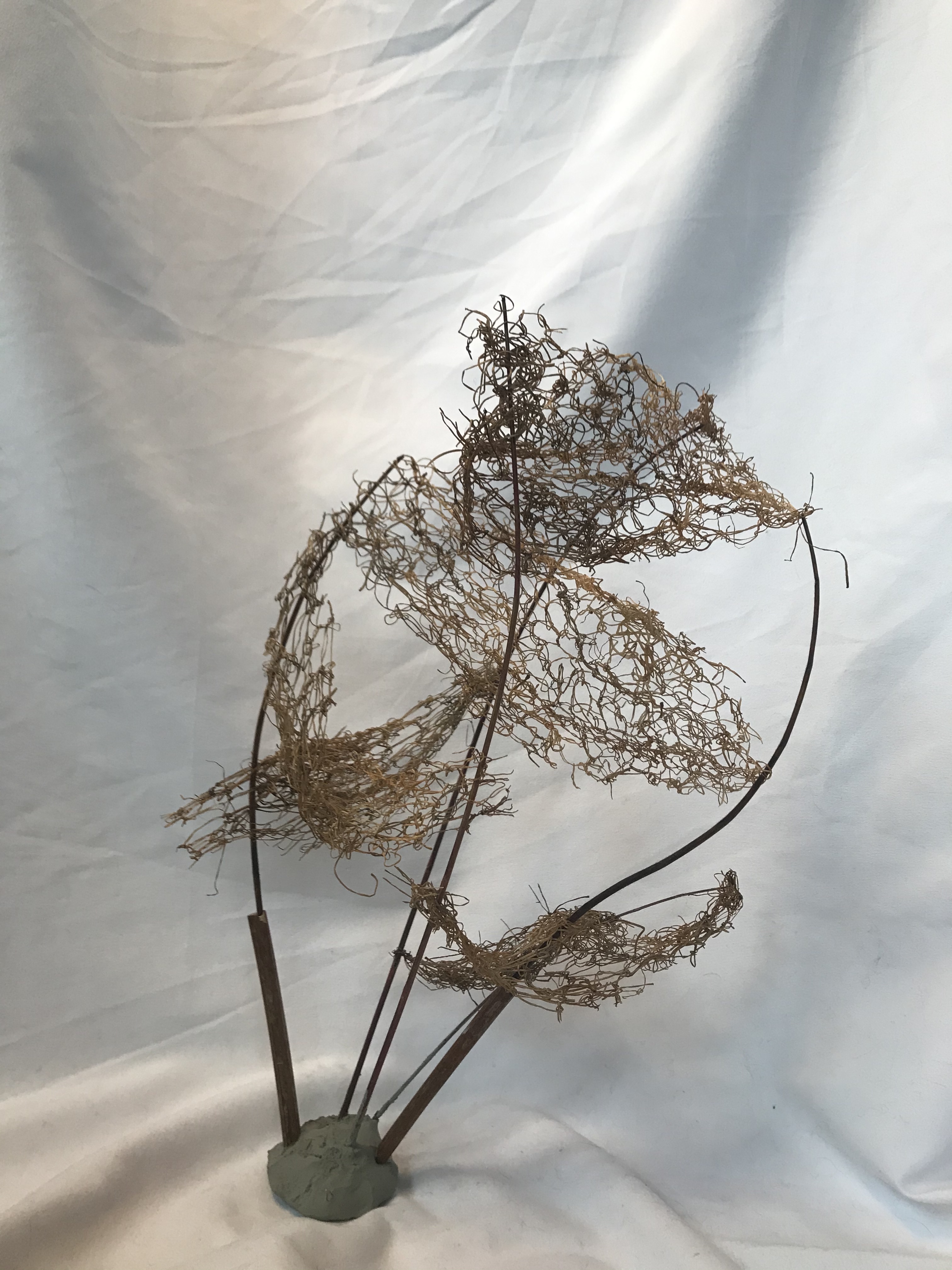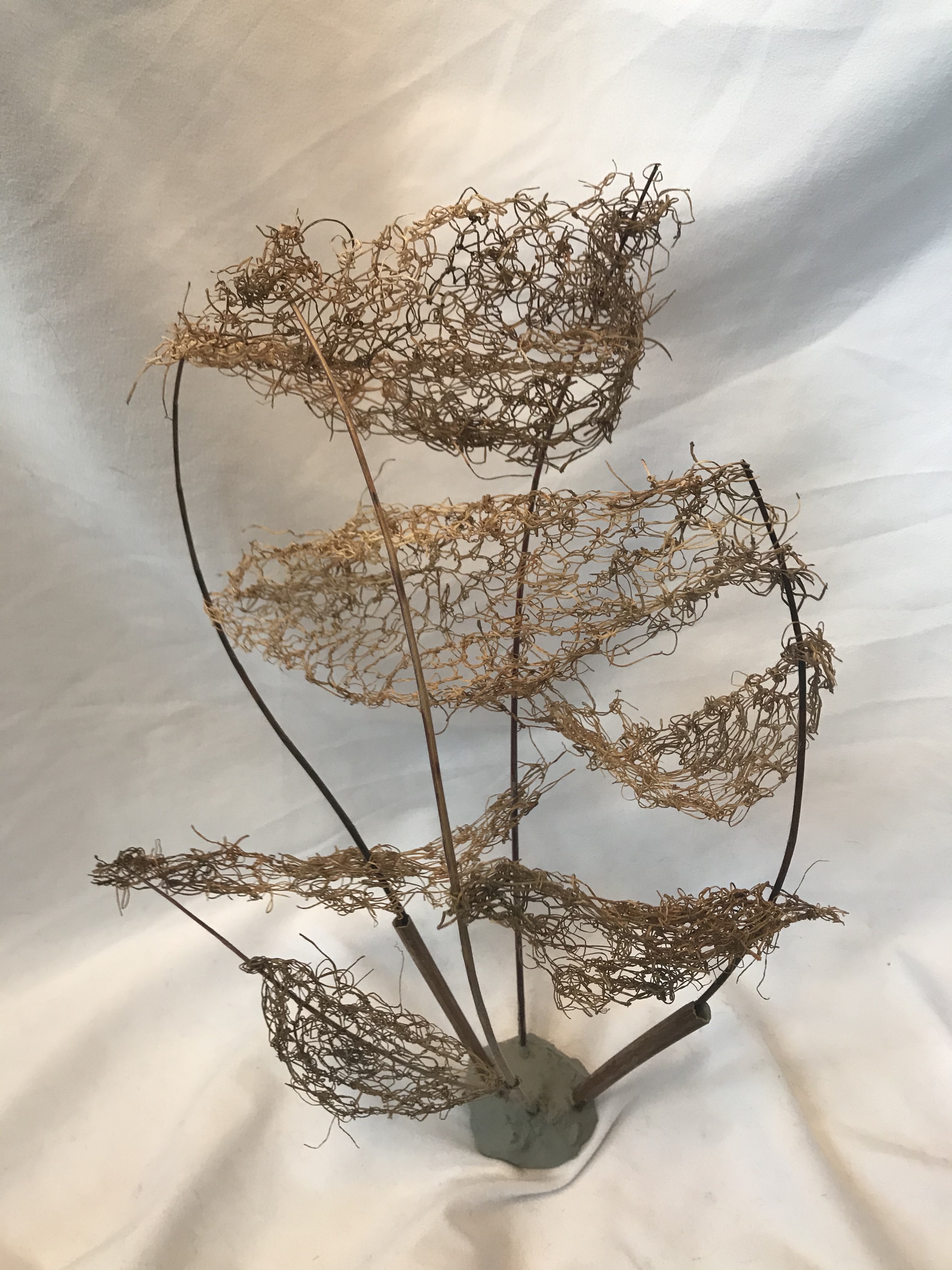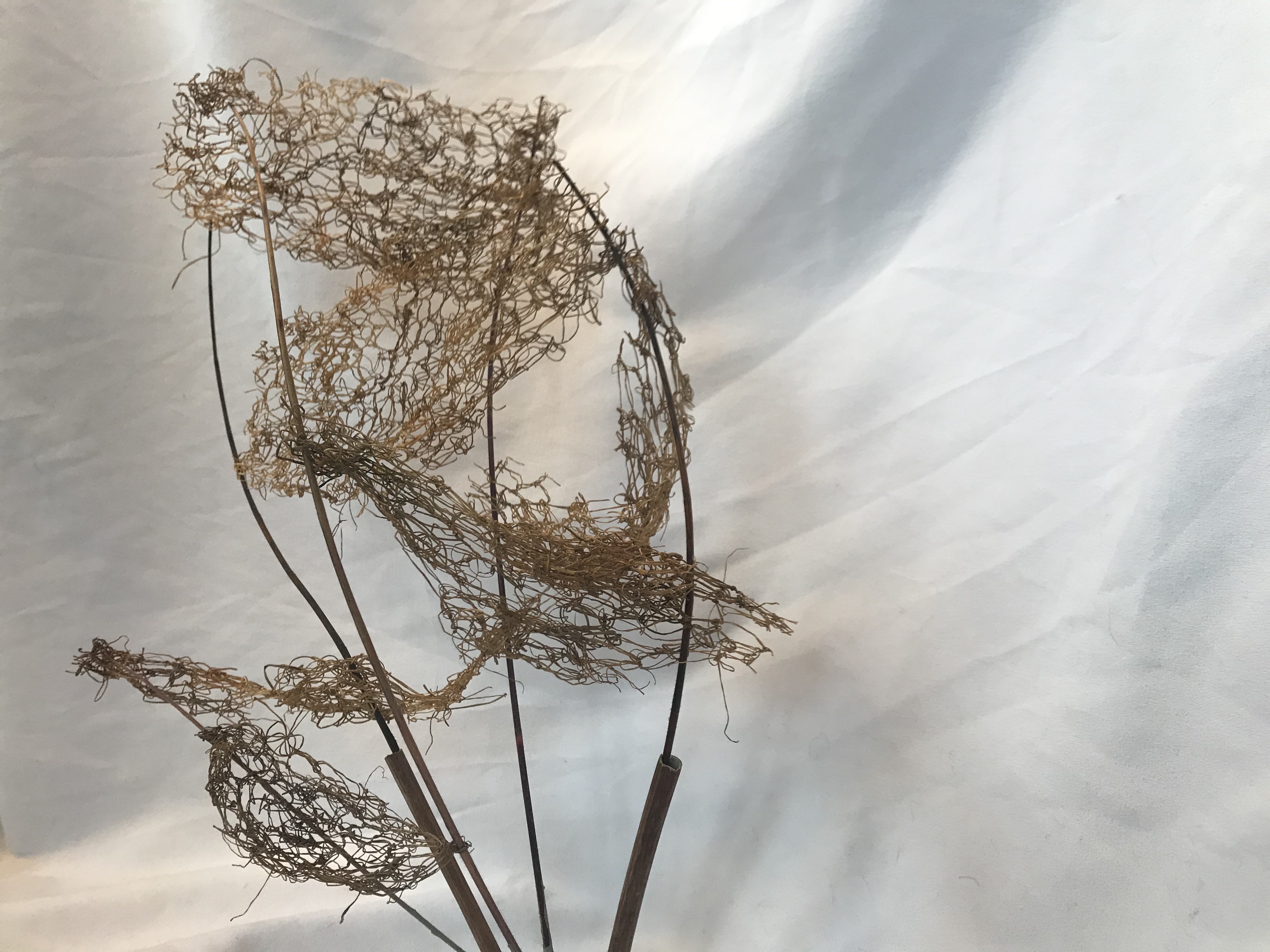 Delicate twists of fiber wrapped atop Sumac stems…attempting to understand this dimension through tangible exploration. Weightless suspension.