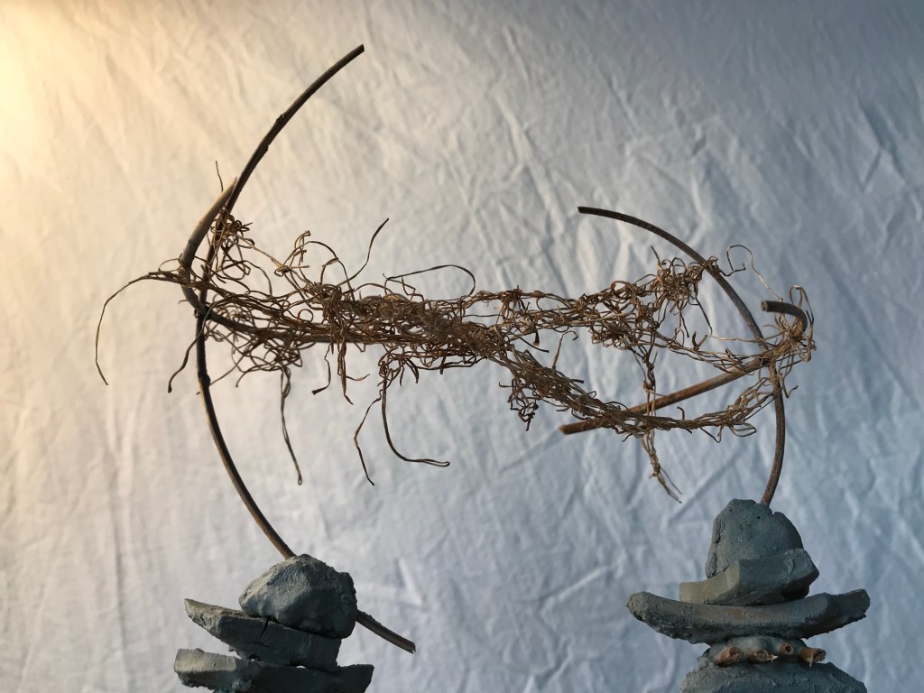 River reed weaving suspended between Shellbark Hickory.