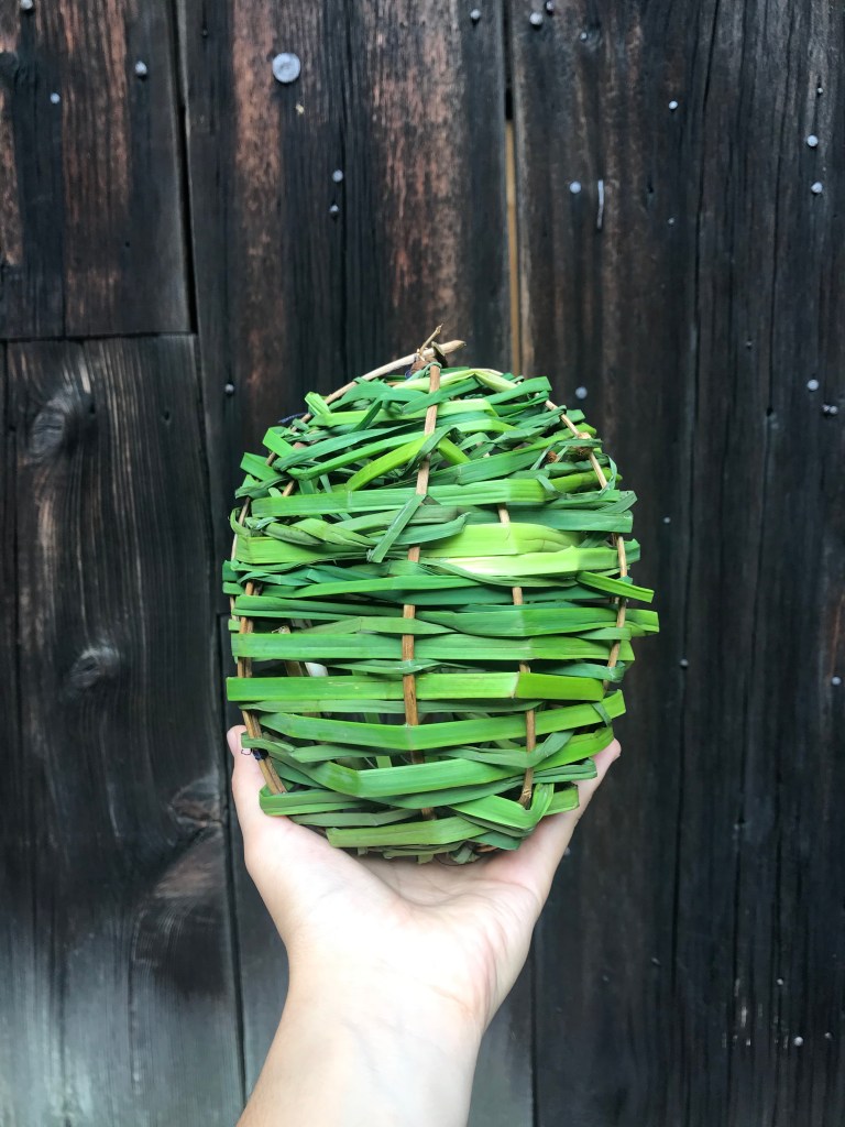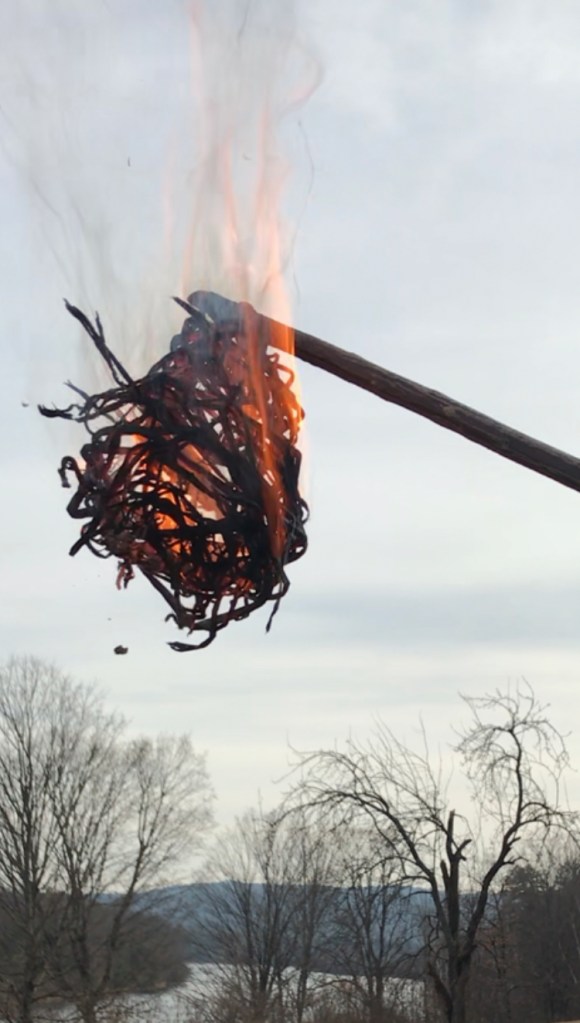 August to December. Shellbark Hickory collected in Massachusetts. Brought to Vermont. River reeds from the shore of the Connecticut River. Woven into an orb. Of… potential? The start of something unknown. Overtime, it changed. Then, it was burned.