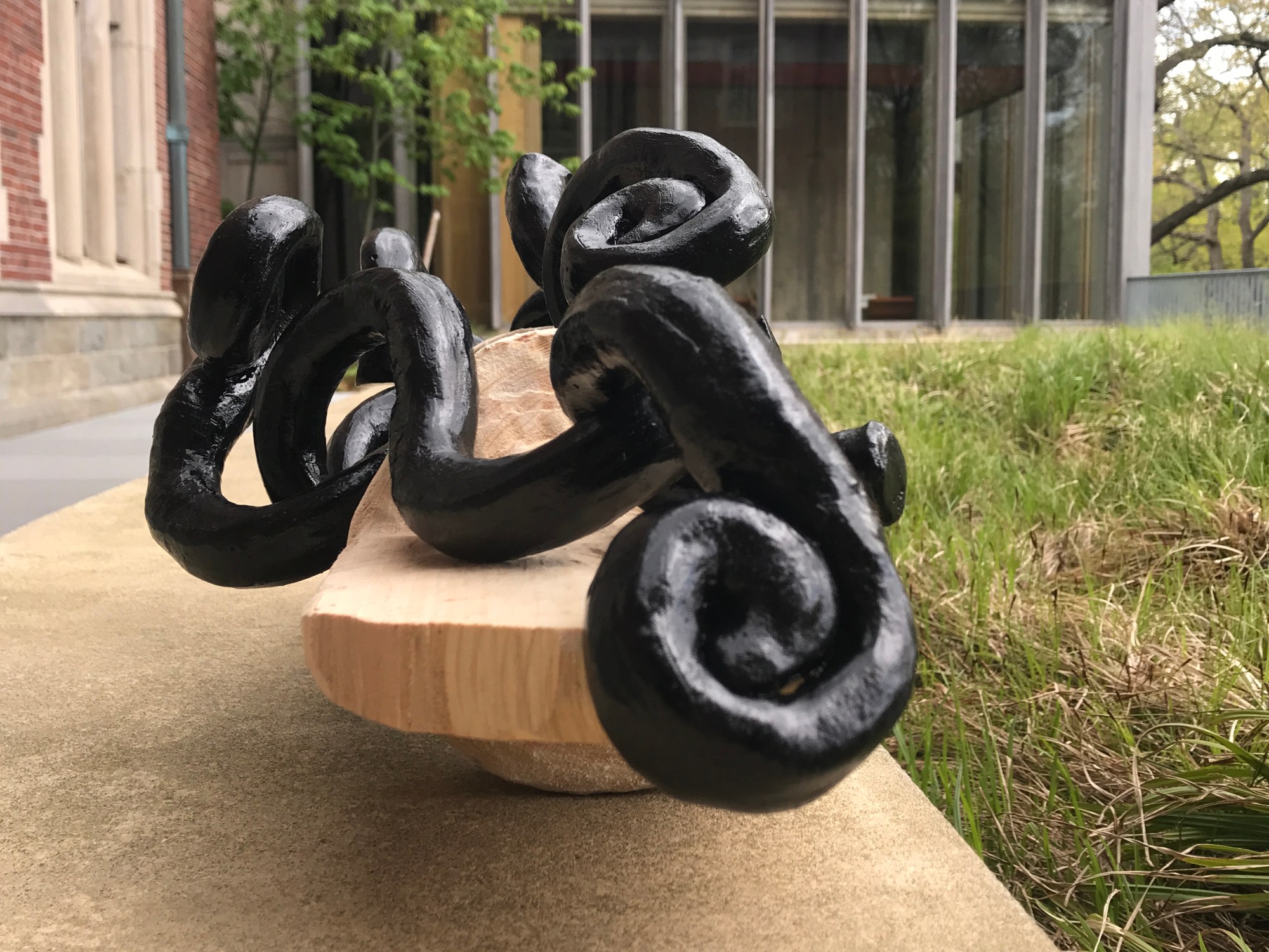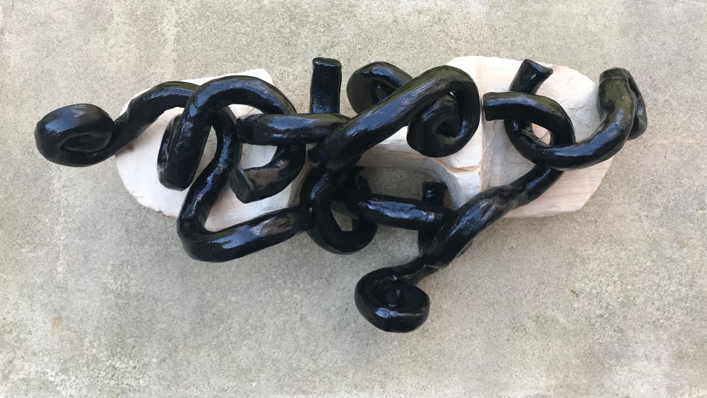 Carved pine armature.